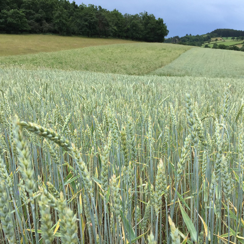 Les cultures de la ferme sont désormais beaucoup moins destinées à l’alimentation animale qu’il y a quelques années, elles associent toujours céréales et légumineuses. Nous ne donnons plus de céréales complémentaires aux vaches. Elle sont élevées entièrement en plein air, nourries uniquement à l’herbe et au foin que nous leur apportons directement au pâturage l’hiver.