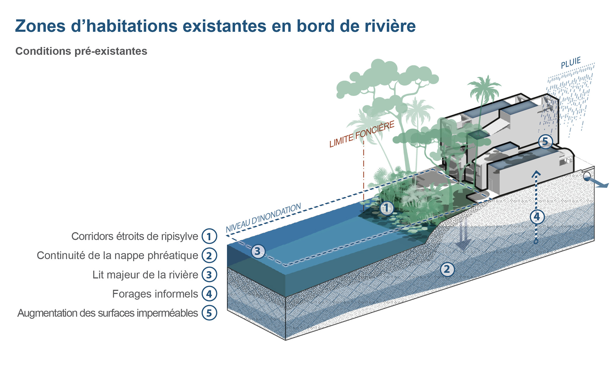 Les zones d’habitations existantes en bord de rivière