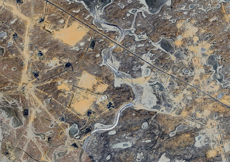 Derrière l’enrobé bitumineux, il y a aussi ces régions lointaines où le pétrole est extrait avant d’être transporté par bateau ou par pipeline, puis raffiné. Face à l’écran de mon ordinateur apparaissent alors des paysages en deux dimensions : Niger, États-Unis, Kazakhstan — deltas, plaines et déserts d’extraction du pétrole.