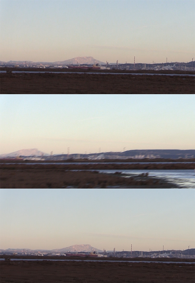 Le champ pétrolier de Tengiz, au Kazakhstan, s’étend aux abords de la mer Caspienne et de ses marais. On peut y imaginer des harengs, des esturgeons, la flore salée, tandis que l’eau se charge des pollutions issues des forages. Plus au sud, les mangroves noircies du delta du Niger, ou encore les déserts irrigués du Texas. Les images aériennes documentent une vue restreinte de ces territoires et mon accès reste médiatisé, limité à la surface d’un écran, où l’impact écologique et social de ces exploitations se diffuse sous forme de textes et d’images. Pourtant, c’est toute une filière qui nous relie, depuis ces territoires lointains jusqu’au fragment d’enrobé sur lequel je marche chaque jour, dans les rues de Marseille.
