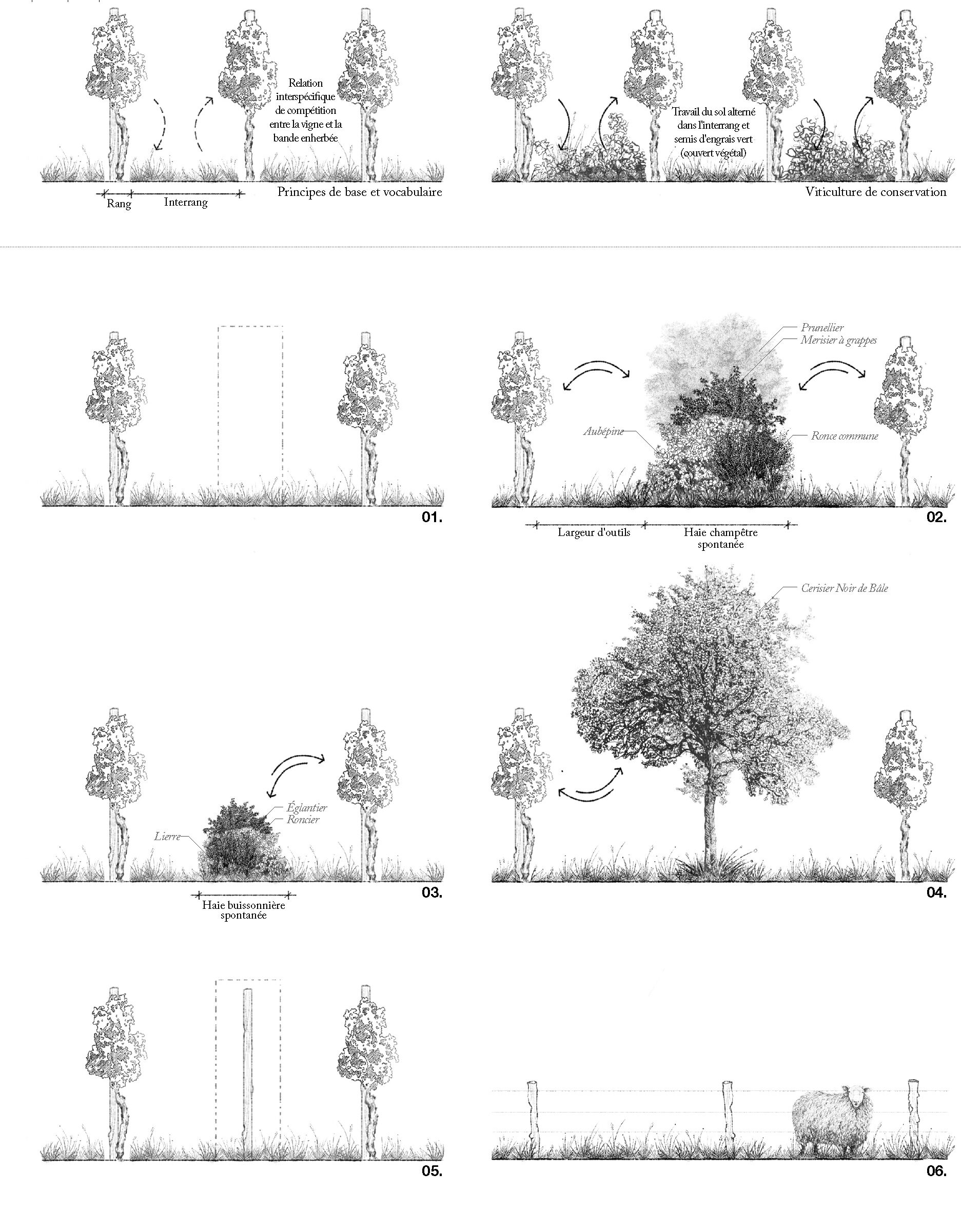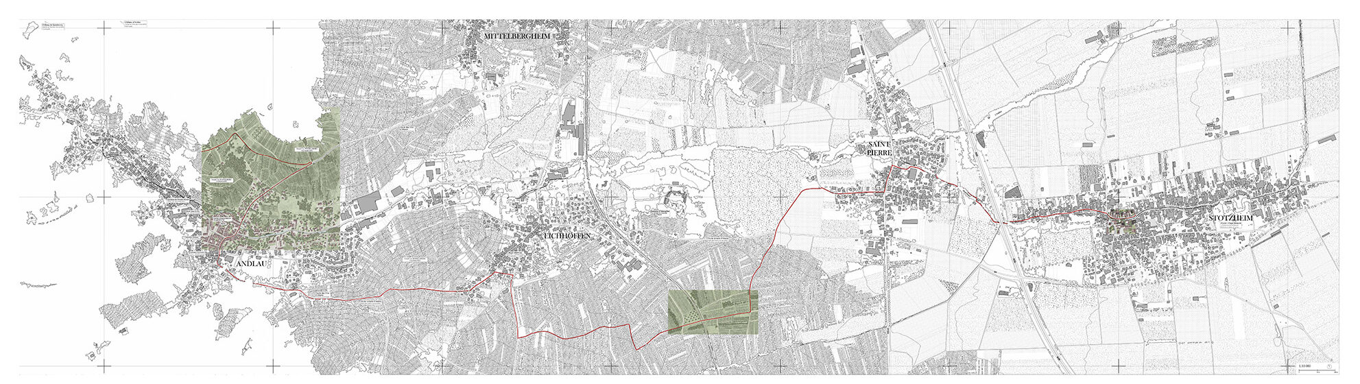 Face à cette réalité complexe, urgente et punitive, une nouvelle approche s’impose. Comme les paysages agricoles, à cette échelle de temps et d’espace, ne se négocient quasiment jamais avec des paysagistes concepteurs⁶, le projet de papier a finalement été ressorti des placards. À l’initiative concertée d’un maire et de quelques viticulteurs, un rendez-vous a été pris pour engager une étude pluriannuelle. Un acte de confiance d’une collectivité destinée à porter un projet expérimental sans attendu de résultats prédéfinis. Mais tout reste à faire. Car nous sommes là dans l’inconnu, aucun cadre de commande public ne convient à ce type de démarche paysagère, agricole et urbaine. De plus, il s’agira aussi de faire atterrir le projet dans la réalité économique et politique d’une petite commune alsacienne à la veille d’un renouvellement de mandature.