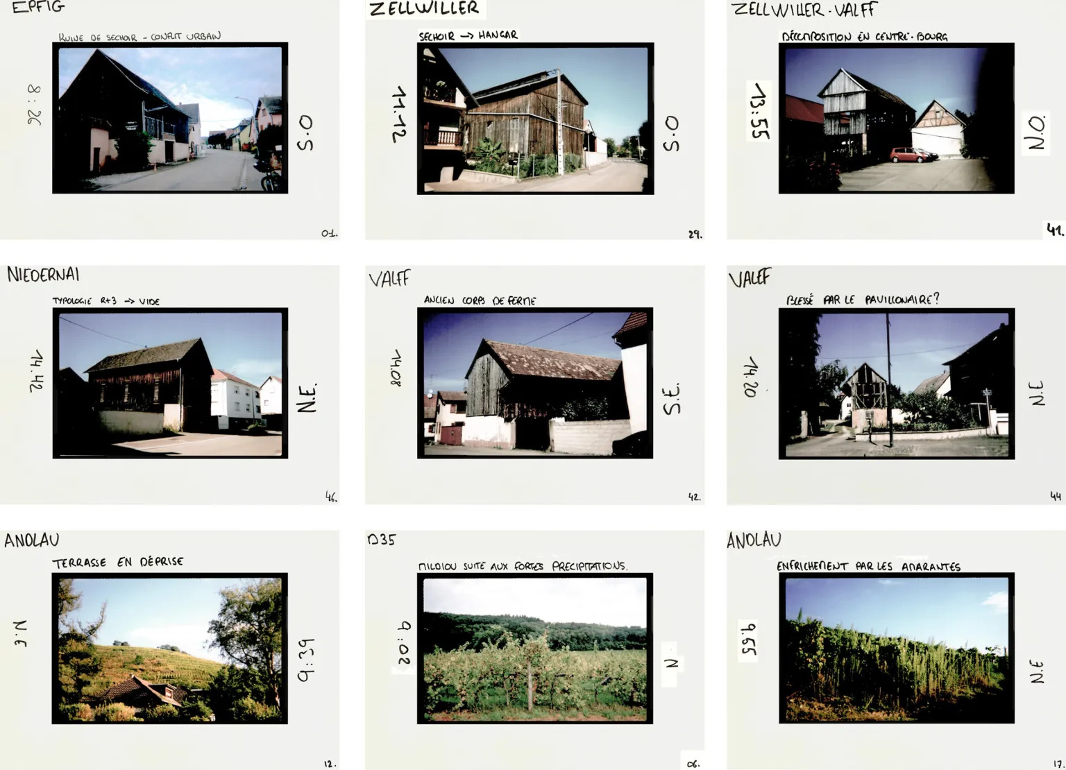 Sur le Piémont des Vosges, la culture de la vigne, véritable pilier économique et culturel de la région, a récemment pris une trajectoire inquiétante, une trajectoire similaire à celle de sa cousine tabacole : mise à l’arrêt trente ans plus tôt dans ses mêmes paysages, aujourd’hui effacée des mémoires et dont il ne reste que les séchoirs qui trônent en ruine au cœur des villages. À l’abri des regards, l’abandon fait aujourd’hui son œuvre en Alsace dans les paysages viticoles : affaissement de murs en pierre, chutes de tuiles sur l’espace public et enfrichement de parcelles sont silencieusement devenus affaires communes. Mais au-delà des conflits d’usages que suscitent ces situations, c’est l’ensemble des viabilités économiques, sociales et psychologiques qui s’amenuisent à mesure que ces « ruines agricoles» s’accumulent. Perçues, par les habitants comme des obstacles à leurs usages du quotidien, elles préoccupent les élus et modifient peu à peu l’image et l’écologie du vignoble au point d’affecter son économie productive et touristique, voir demain, de précipiter l’ensemble du piémont dans une fermeture de ses paysages qui condamnerait une part non négligeable des vivants² peuplant ses milieux. Alors, face à la multiplication des situations critiques et l’incapacité générale à formuler des réponses cohérentes à l’échelle du piémont et à long terme, un projet de paysage fait le pari de créer du sens dans l’urgence en invitant tout le monde autour de la table.