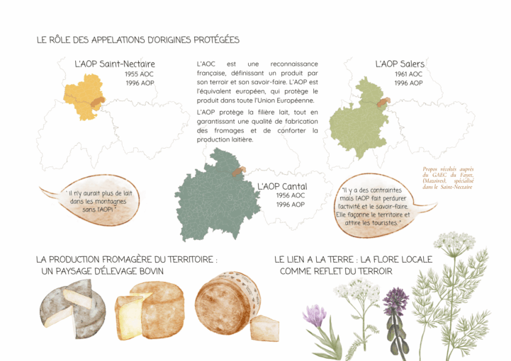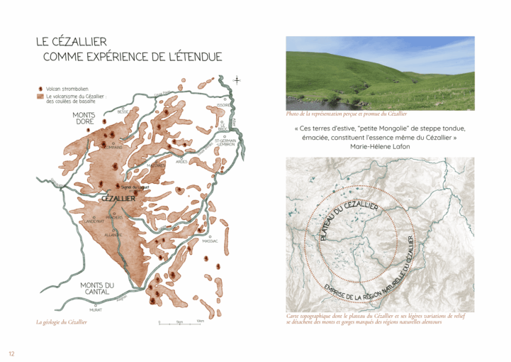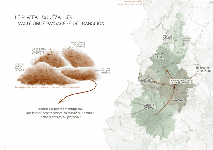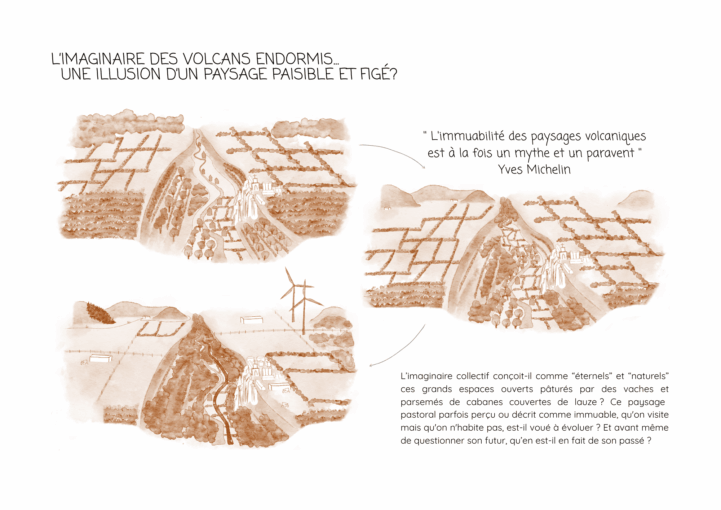 C’est à travers l’arpentage, les recherches et lectures, et les échanges, que je suis allée à la découverte de ce site, si proche de chez moi mais que je connaissais si peu, le tout afin de comprendre les paysages qui se trouvent sous nos yeux, dans le but d’élaborer des scénarios prospectifs. Car en effet, malgré ce que renvoient certaines perceptions d’habitants et acteurs du territoire, le paysage du Cézallier n’est pas non plus voué à être immuable, notamment dans cette période charnière, où de multiples enjeux, cohabitent, se superposent.