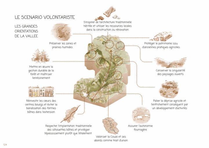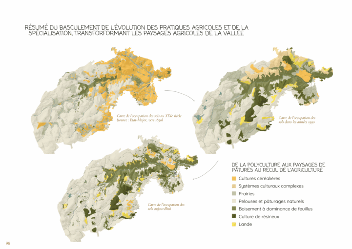 Rédigé sur un peu plus d’un semestre, cet exercice “Cent ans de paysage” se veut pouvoir agir comme outil d’une certaine compréhension du territoire, mais également comme support de médiation, afin d’adresser ce paysage comme résultante de décisions et approches passées, et sous-entendant une nécessité de l’adresser aujourd’hui afin d’accompagner, dans leur perpétuation ou mutation, les changements demain.